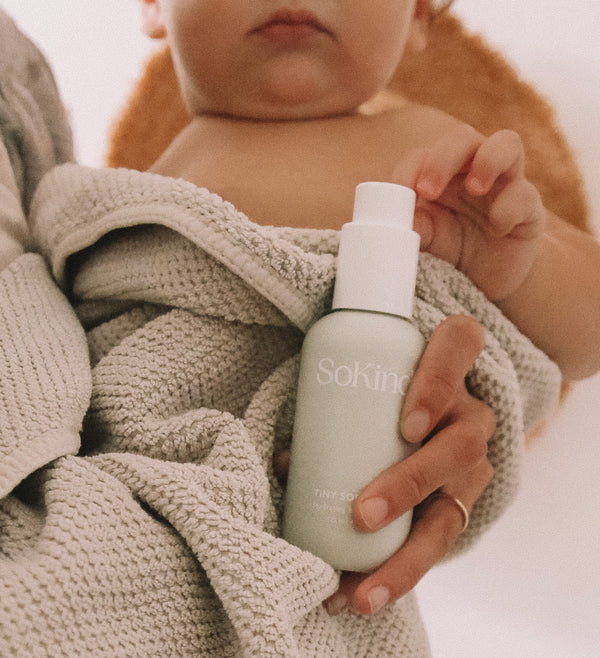 We recommend that you wait with the first bath until your baby’s skin has absorbed the fetal fat and the remains of the umbilical cord are fallen off. You can read more about this in our article about The Newborn Skin.