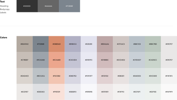 Row 2: #7C858E, #9CA3AB, #BCC2C6, #DEE0E3